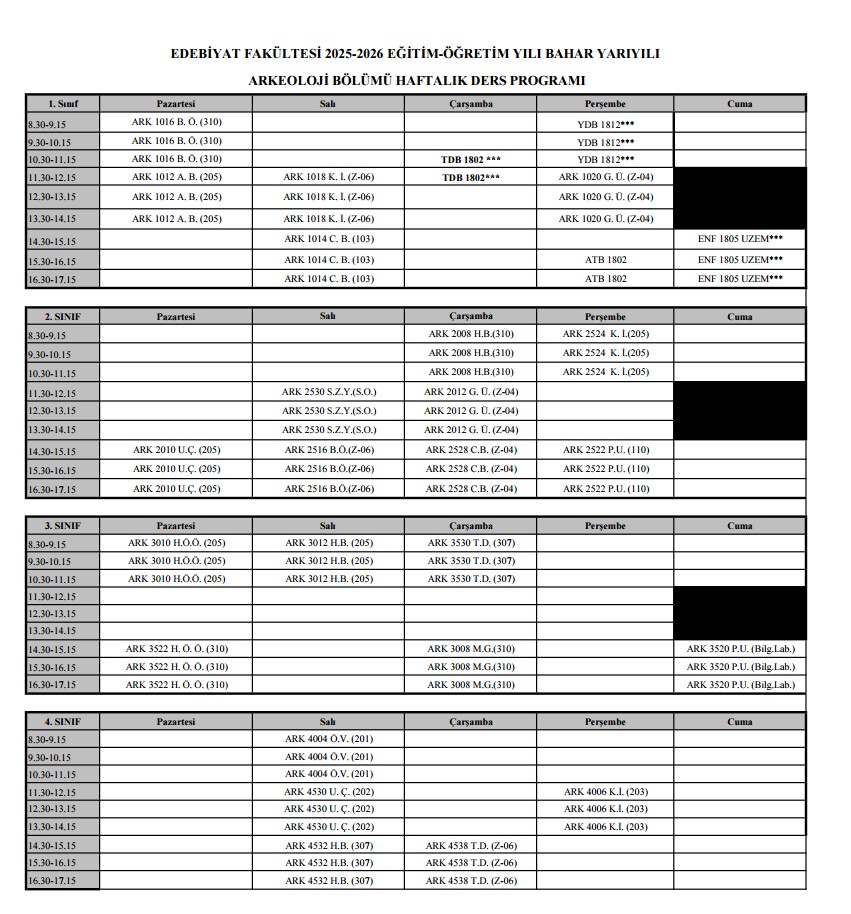 2025-2026 Bahar Yarıyılı Lisans Ders Programı
